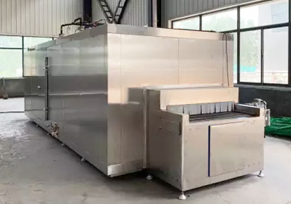 隧道式速凍機是在短時間內,把速凍的物品溫度凍達到-18°,30分鐘內快速通過冰晶生產帶(0到-5度區間)…
